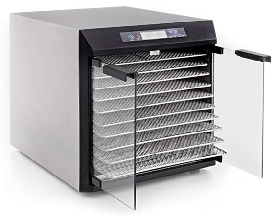 Er zijn ook voedseldrogers van Excalibur met nog meer capaciteit, maar die zijn uiteraard duurder in prijs. Zo is er bijvoorbeeld de Excalibur EXC10ELF die meer dan duizend euro kost. Dit is de nieuwste voedseldroger van deze fabrikant. Er is in plaats van kunststof, gekozen voor roestvrij staal (RVS). Deze droger is voorzien van allerlei moderne snufjes. Je krijgt wel vijf jaar garantie op deze robuuste voedseldroger.